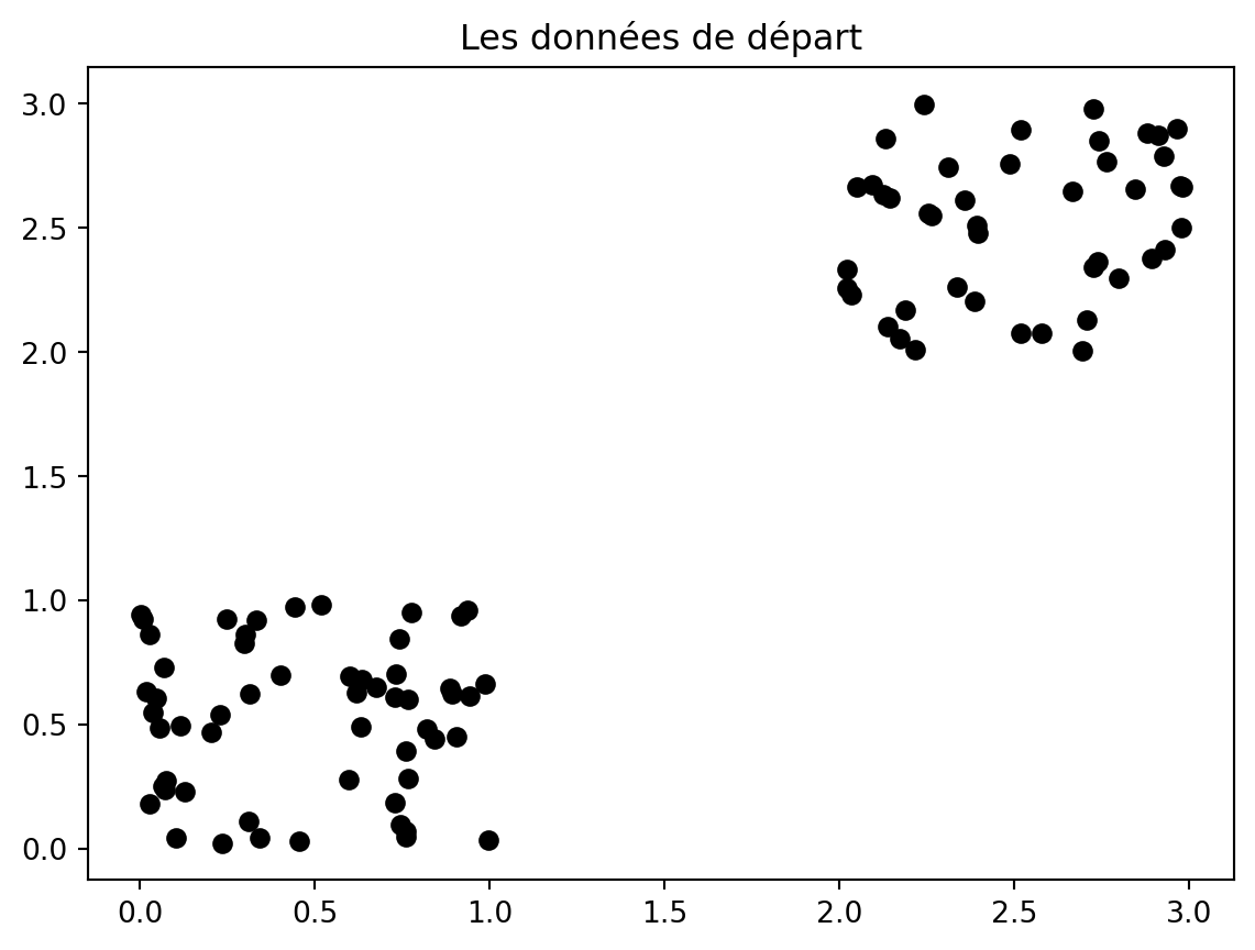 Pour améliorer la qualité de la solution, une approche simple consiste à répéter l’algorithme N fois à partir d’initialisation aléatoires et différentes pour ne conserver au final que la solution associée à la plus petite valeur de J((\boldsymbol{c}_k)_{k=1}^K, (G_k)_{k=1}^K).