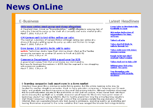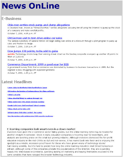La date est écrite avec une petite police, comme une grande partie du texte. Les titres de l'"E-business" ayant une taille médium.