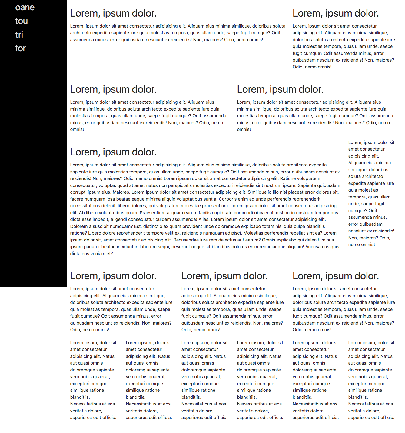 - À l'aide des outils de votre navigateur, comprendre le fonctionnement de la grille. Identifier les positionnements et propriétés de boites consécutifs produits par les classes ajoutés au fichier html.